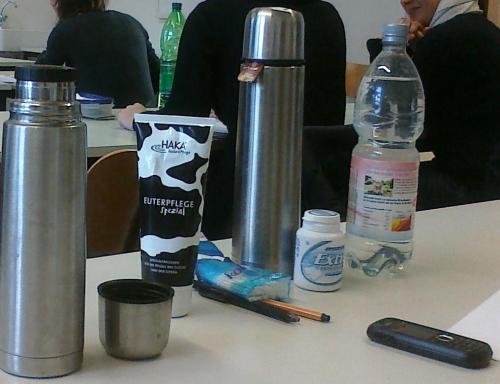 Ein Kommilitone vergewissert sich nochmal: „Also ich möchte ja nen unbenoteten Schein. Soll ich die Fragen stichwortartig beantworten oder trotzdem in ganzen Sätzen schreiben?“. Ja, die Aggressionen kochen so langsam über. Meine Nebensitzerin bringt mich Gott sei Dank wieder etwas runter – sie cremt sich noch kurz die Hände mit wohlig duftendem Melkfett ein, bevor sie sich ihres Strickpullis entledigt. Die Creme trägt übrigens – kein Scherz (siehe Beweisfoto) – den Namen „Euterpflege spezial“. Ich möchte gar nicht daran denken…NEIN…PFUI!